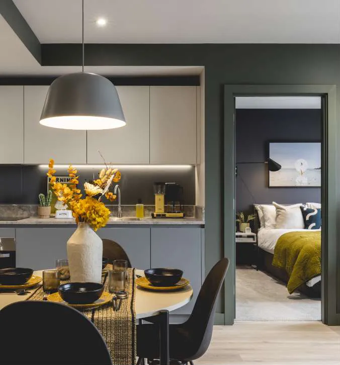 Stylish, pet-friendly apartments, city views and open-plan living, with a vibrant community fostering connections through shared spaces and regular social events.
